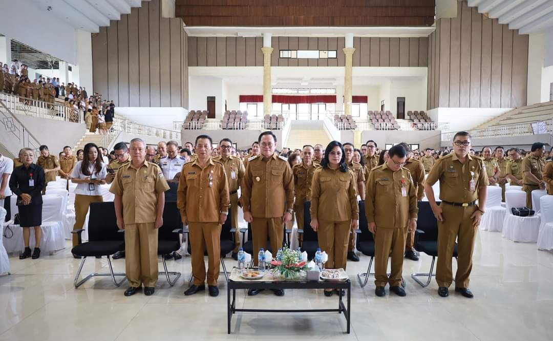 Turut hadir, Asisten 1, Asisten II, Asisten III, Para Kadis, Kaban, Kabag, serta segenap Jajaran ASN dan THL Pemkab Minahasa.(engel)