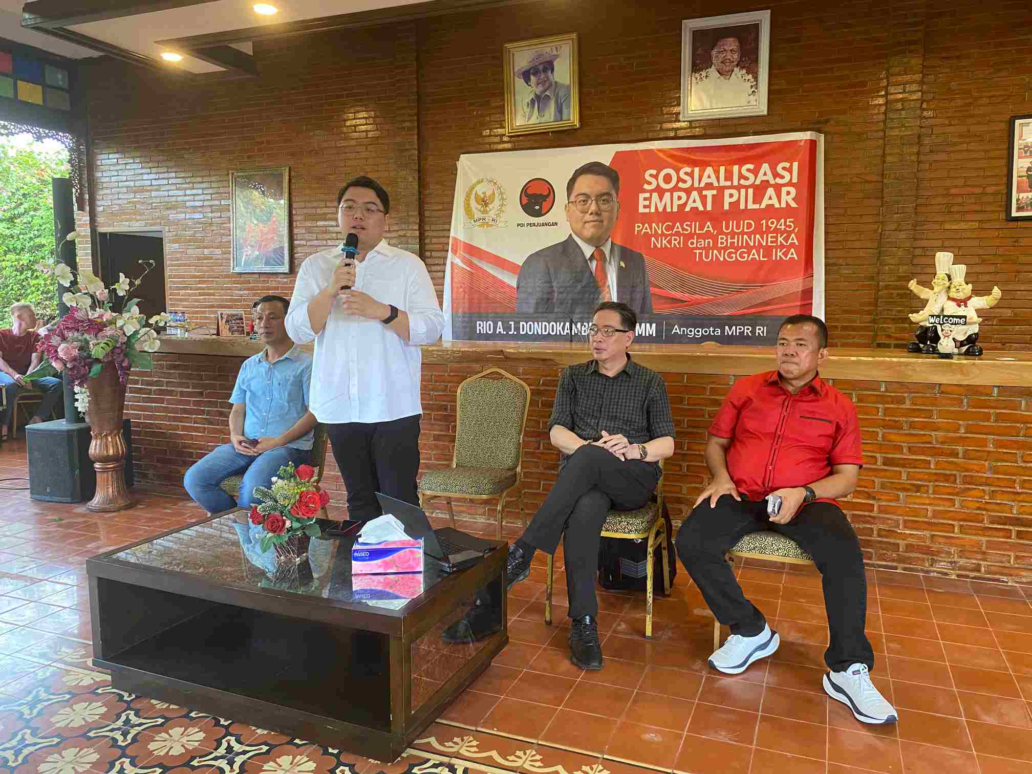 “Kita semua yang hadir diharapkan menjadi garda terdepan untuk mensosialisasikan kembali terkait dengan apa itu Empat Pilar Kebangsaan. Memahami serta mengamalkan nilai-nilai empat pilar adalah tanggung jawab bersama kita,” ungkap Rio Dondokambey.