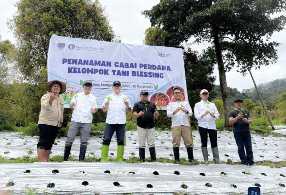 BI secara simbolis menyerahkan sekaligus menanam 16.000 bibit cabai rawit di Desa Bongkudai Baru, Kabupaten Bolaang Mongondow Timur (Boltim). Bantuan ini diberikan kepada Kelompok Tani (Poktan) Blessing, yang merupakan kelompok binaan BI di Bongkudai Baru Kabupaten Boltim pada Minggu (16/3/2025).