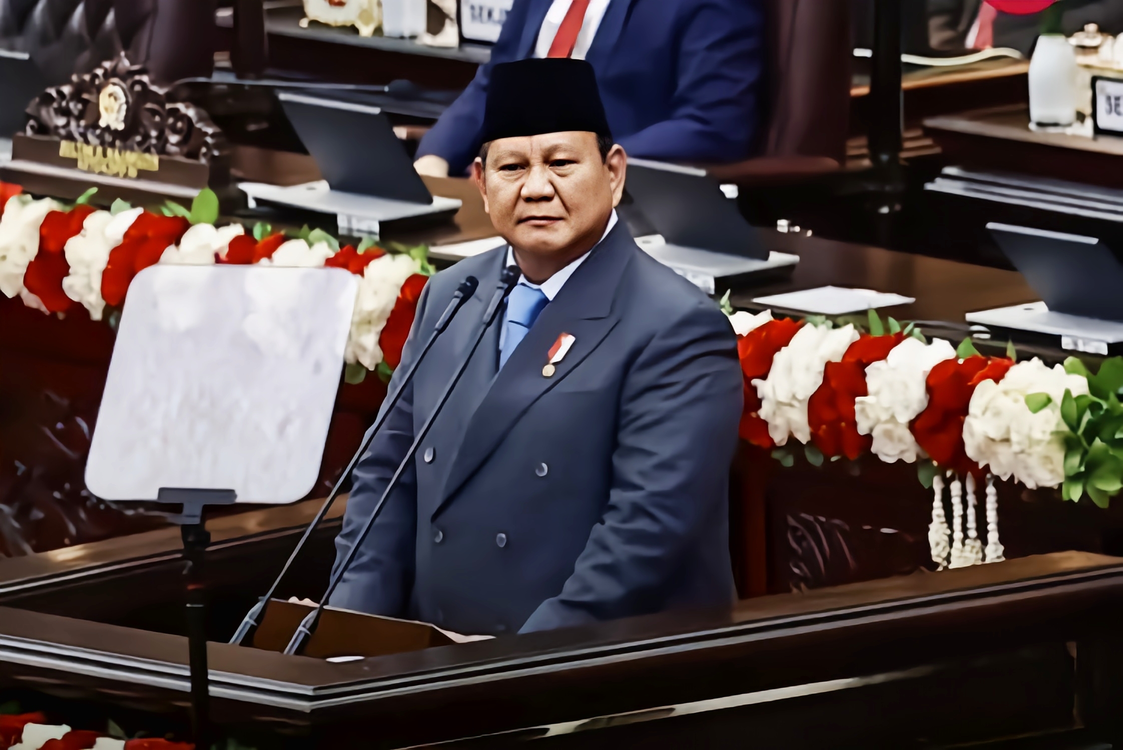 Rapat paripurna ini di gelar secara dalam jaringan (daring) / secara online langsung dari gedung Dewan Perwakilan Rakyat (DPR) RI, Senayan, Jakarta, tempat dimana Presiden RI, Prabowo Subianto menyampaikan pidatonya.