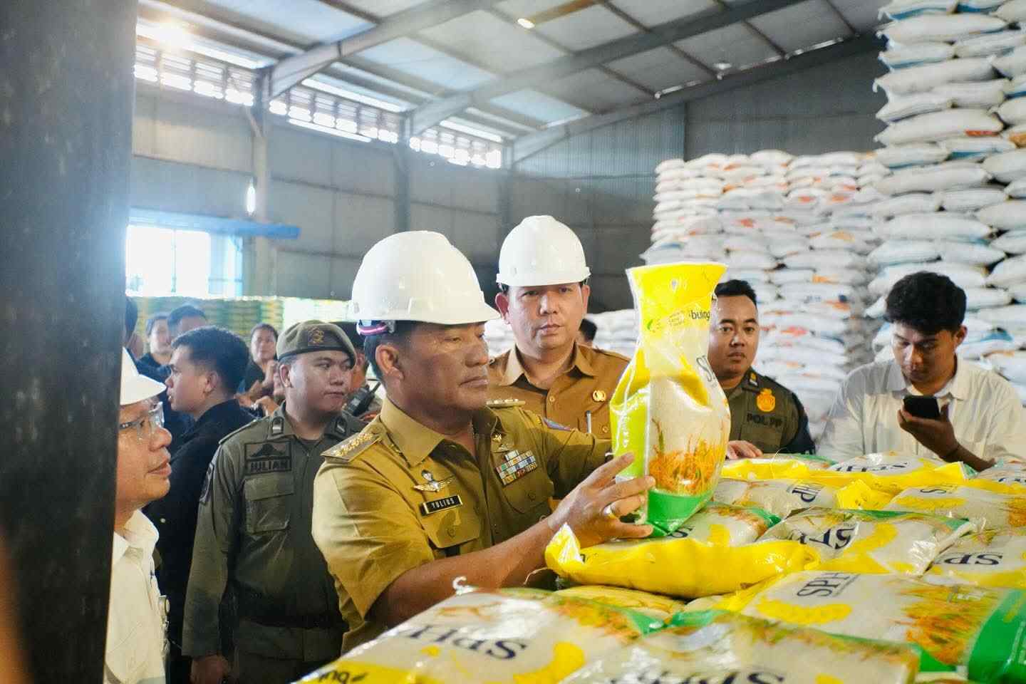 Bitung, Sulutreview.com — Gubernur Sulawesi Utara (Sulut), Yulius Selvanus, menyalurkan bantuan pangan bertempat di Komplek Pergudangan Bulog Paceda, Kota Bitung, Selasa (11/10/2025).
