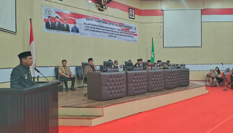 KOTAMOBAGU — Wali Kota Kotamobagu, Weny Gaib bersama Wakil Wali Kota Rendy Virgiawan Mangkat, menghadiri Rapat Paripurna DPRD Kota Kotamobagu dalam rangka pembicaraan tingkat I penyampaian Rancangan Kebijakan Umum Anggaran Pendapatan dan Belanja Daerah (KUA-PPAS) Tahun Anggaran 2026, yang bertempat di Gedung DPRD Kota Kotamobagu, Jalan Paloko Kinalang, Senin (10/25).