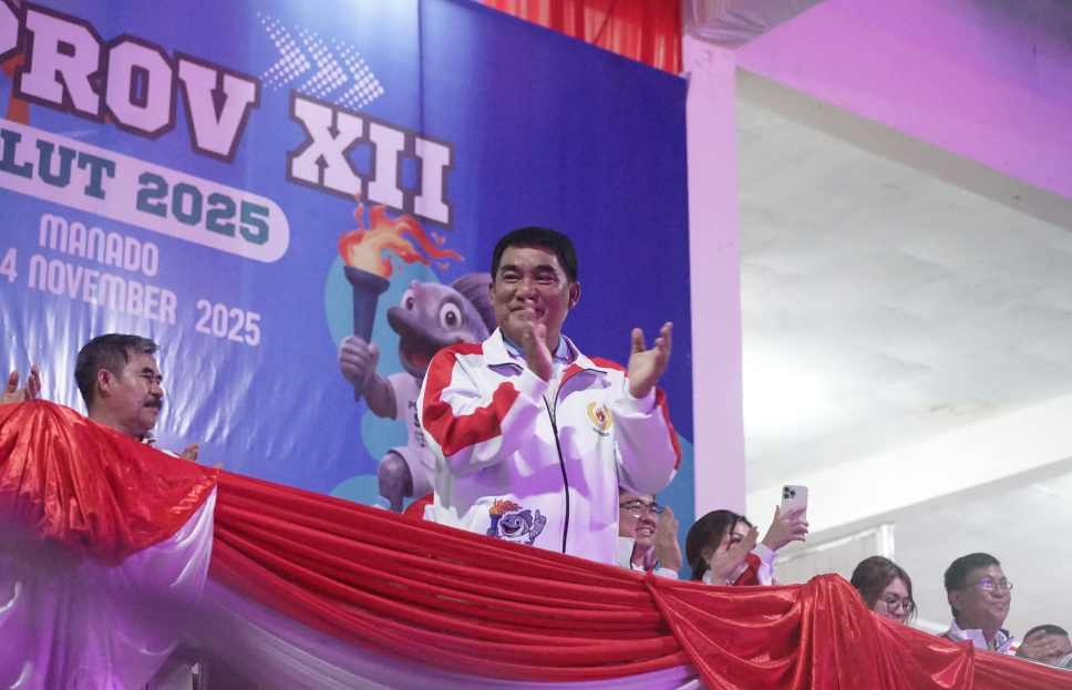 Manado, Sulutreview.com — Seremoni Pekan Olahraga Provinsi (Porprov) Sulawesi Utara (Sulut) XII resmi dibuka Gubernur Yulius Selvanus di Stadion Klabat Manado, Rabu (19/11/1025).
