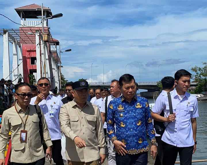 Usai melakukan pertemuan di hotel Sentra Menhub bersama Wagub dan jajaran melakukan peninjauan di pelabuhan Kalimas Manado.(hilda).
