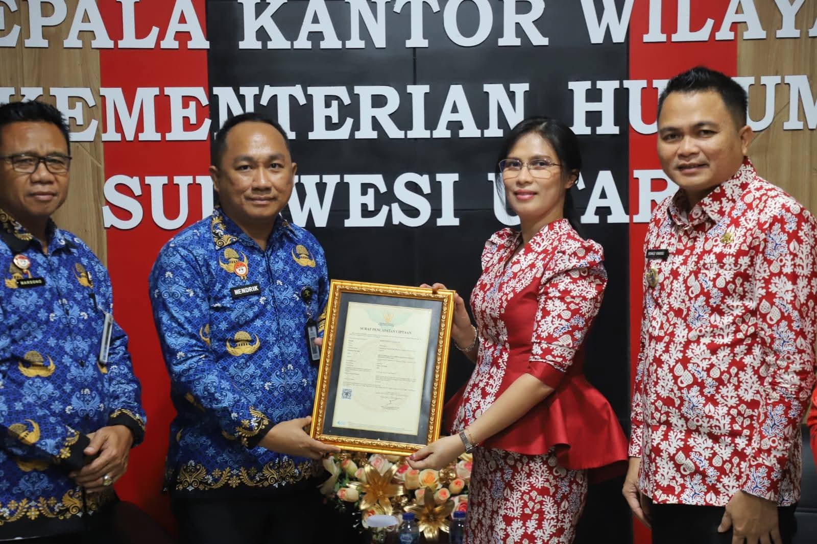 Momen penting dalam pertemuan adalah penyerahan Surat Pencatatan Ciptaan oleh Kepala Kantor Wilayah Kemenkumham Sulut, Hendrik Pagiling, SH, MH, kepada Bupati dan Ketua Dekranasda. Dua karya seni yang resmi mendapatkan perlindungan hukum adalah: