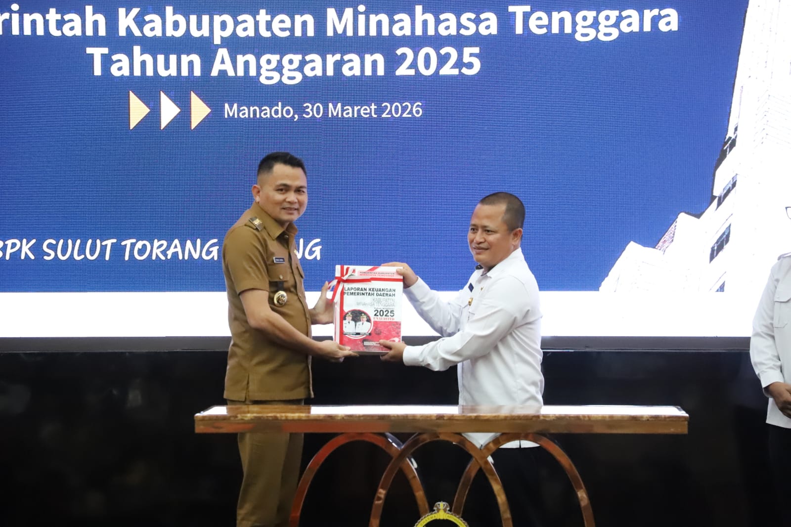 Mitra, Sulutreview – Bupati Mitra Ronald Kandoli secara resmi menyerahkan Laporan Keuangan Pemerintah Daerah (LKPD) Unaudited Tahun Anggaran 2025 kepada Badan Pemeriksa Keuangan (BPK) Perwakilan Sulawesi Utara di Kantor BPK Perwakilan Sulut, Manado, Senin (30/03/2026).